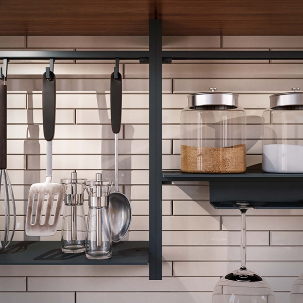 η μοντέρνα πινελιά που προσδίδουν τα ανοιχτά ράφια,